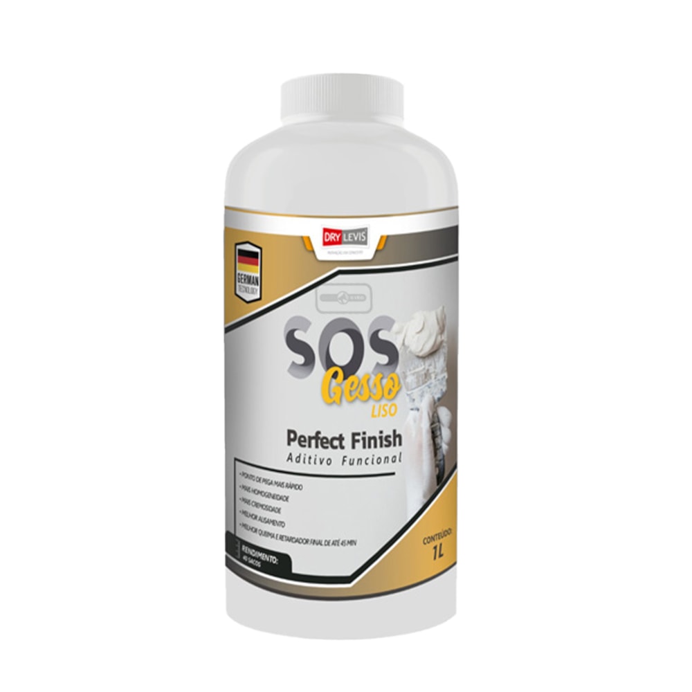 O SOS Gesso Liso perfect finish da Drylevis é um aditivo multifuncional que retarda a pega do gesso. Aumentando a trabalhabilidade do gesso em até 45 minutos.